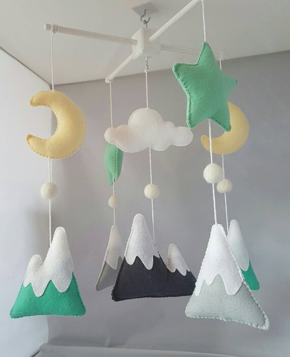 Mobile Bebe Montagne Mobile Pour Bebe Lit Bebe Mobile Chambre De Bebe Moderne Berceau Nuages Mobile Pepiniere Gris Etoiles